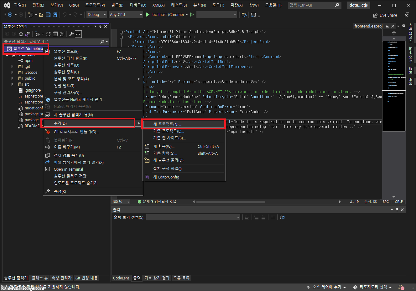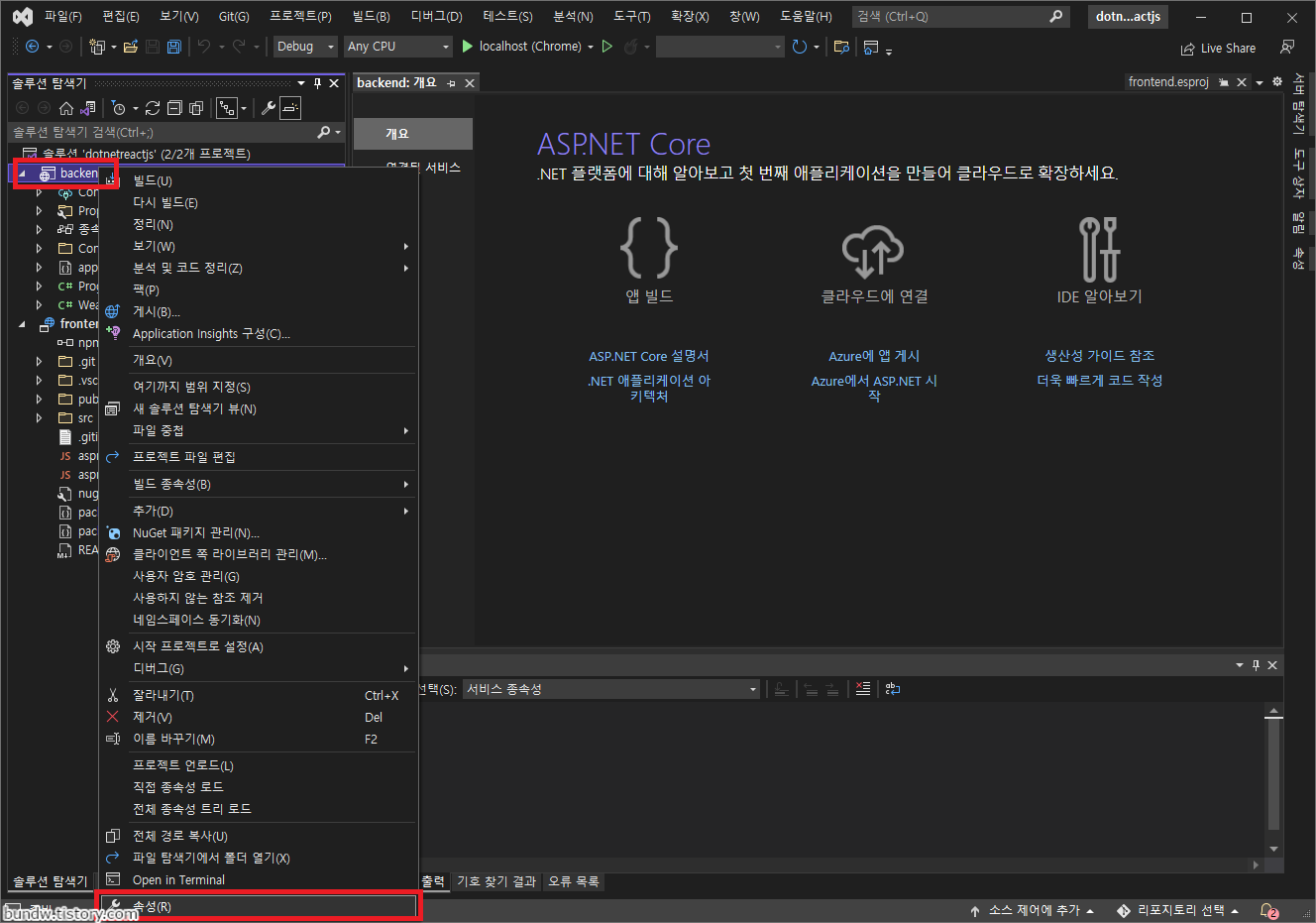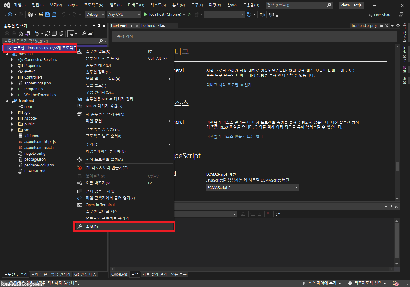 ASP.NET Core(닷넷 코어) + React(리액트) Visual Studio(비주얼 스튜디오) 프로젝트 생성