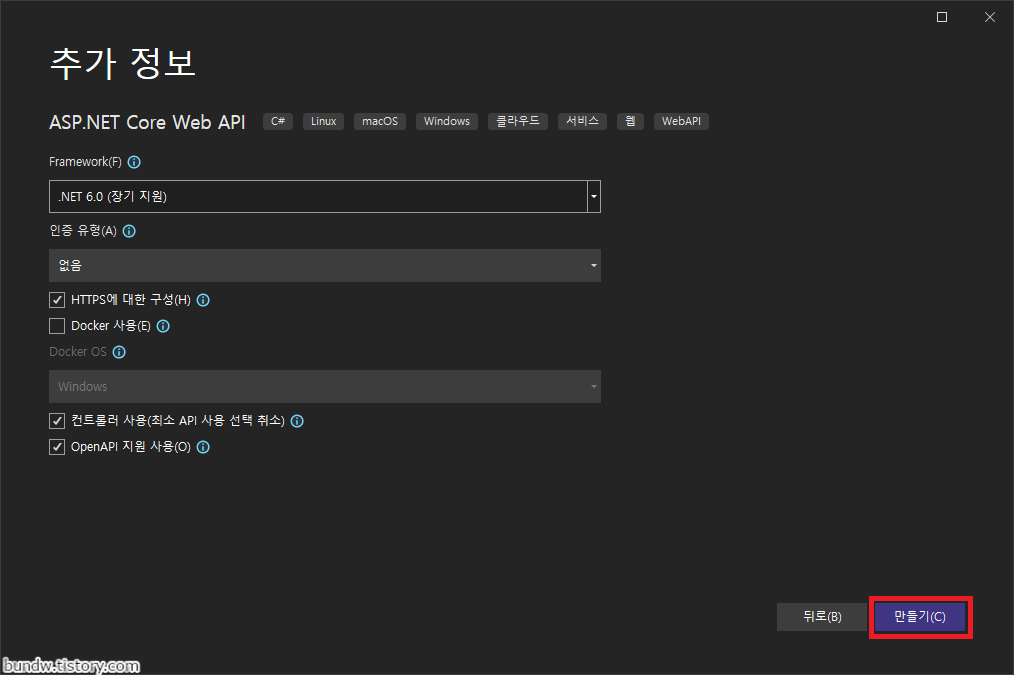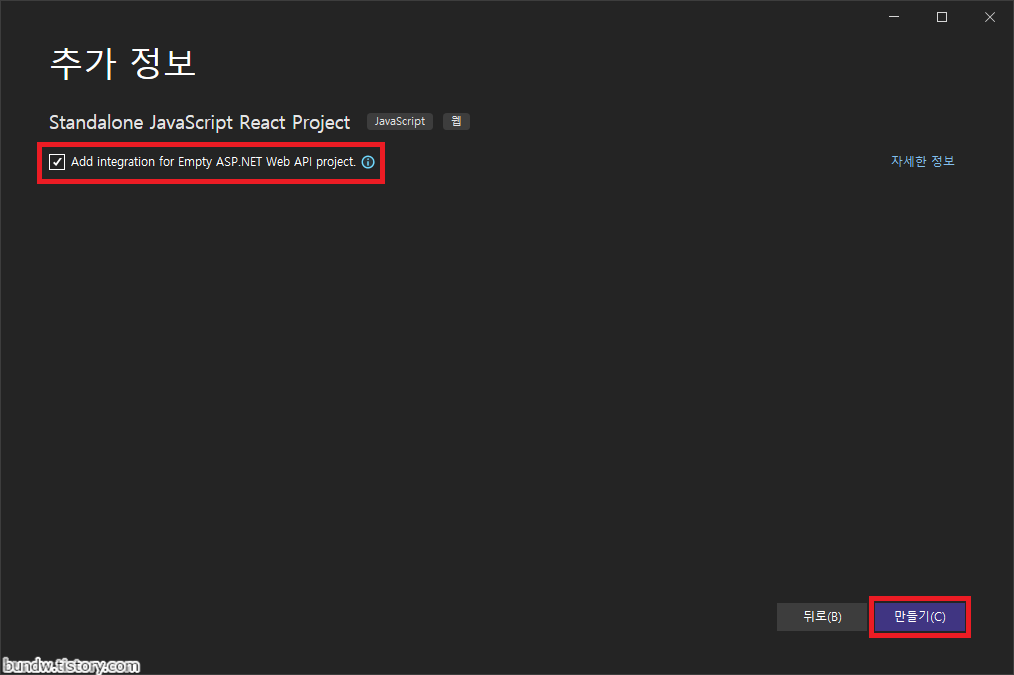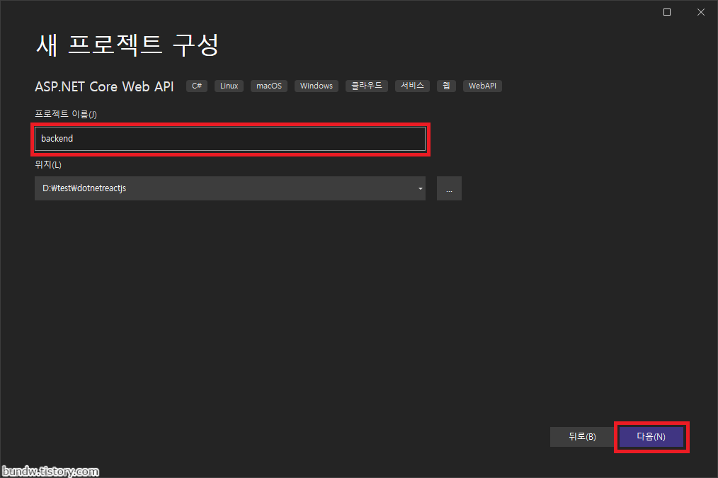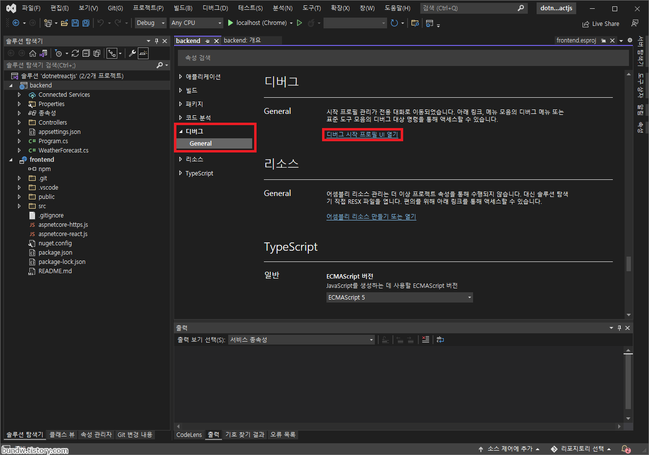 ASP.NET Core(닷넷 코어) + React(리액트) Visual Studio(비주얼 스튜디오) 프로젝트 생성