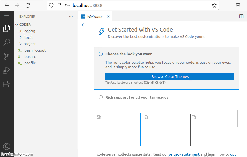VSCode 도커(Docker)로 docker-compose 사용하여 웹IDE 구축 (cdr/code-server)