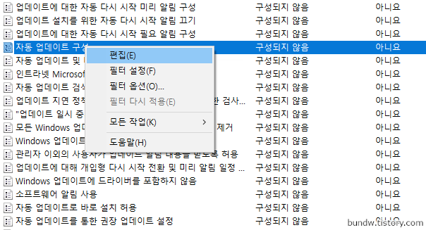 자동 업데이트 구성에서 오른쪽 버튼을 클릭하여 편집을 클릭합니다.