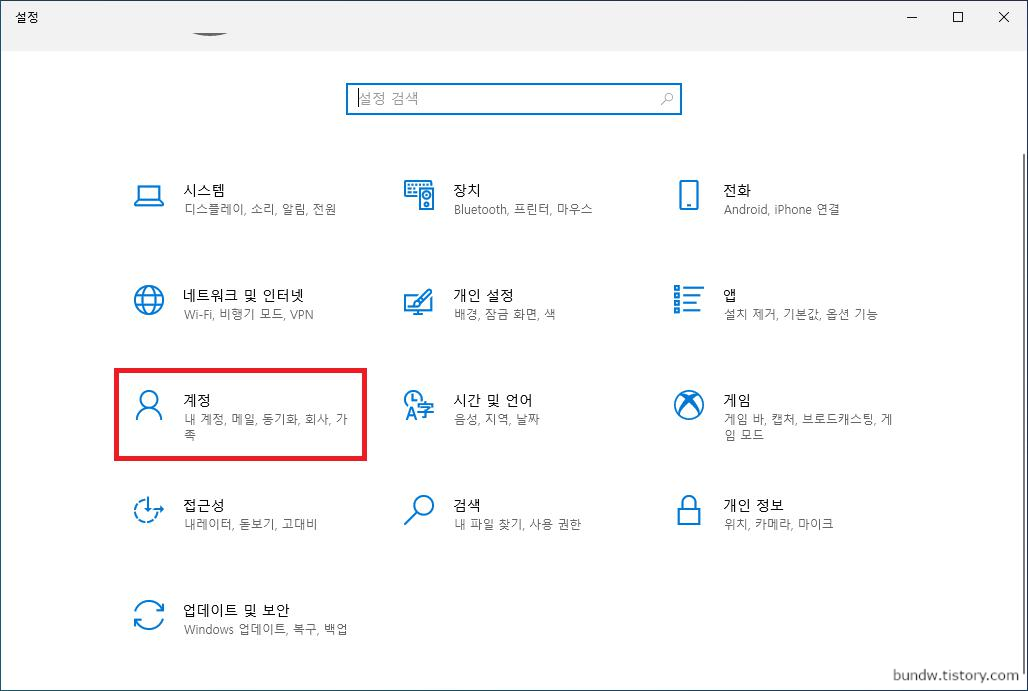 설정 항목중에서 계정을 클릭합니다.