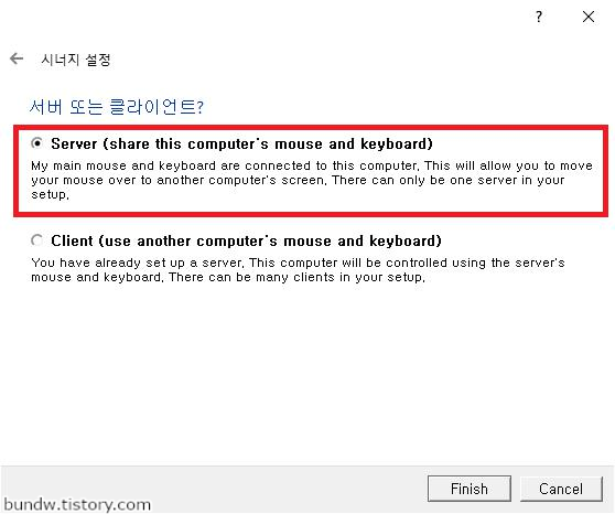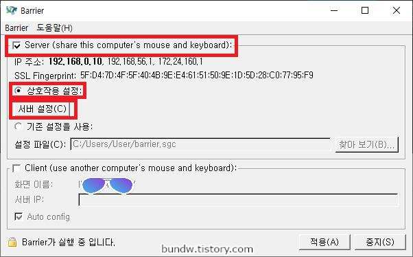 서버 설정 (키보드와 마우스가 공유되는 컴퓨터)