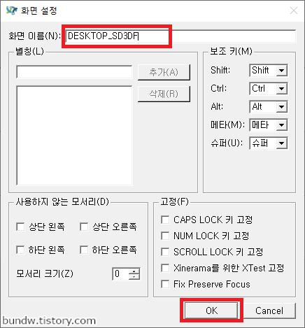 화면 이름에 컴퓨터의 화면 이름(장치 이름)을 입력하고 OK버튼을 클릭합니다.
