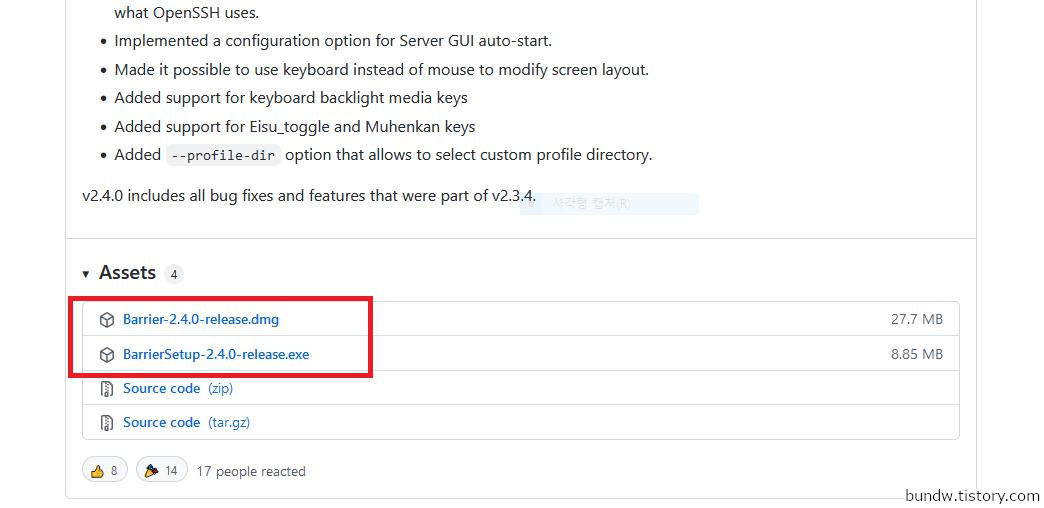 하지만 다행히도 Synergy를 fork하여 거의 기능상 차이가 없는 배리어(Barrier)라는 무료 소프트웨어가 있습니다.