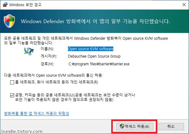 방화벽 보안 경고가 뜨면 액세스 허용을 클릭합니다.