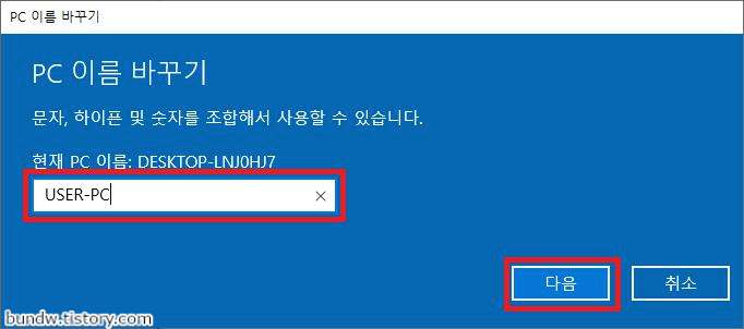 원하는 컴퓨터 이름을 입력하고 다음을 클릭합니다.