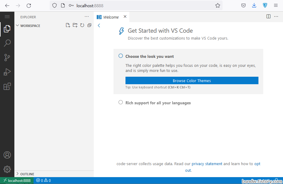 이전에는 위 링크의 code-server 도커 이미지를 사용했지만, 우연치 않게 글쓴이의 마음에 좀더 든(?) 다른 도커 이미지를 사용하게 되서 글을 쓰게 되었습니다.