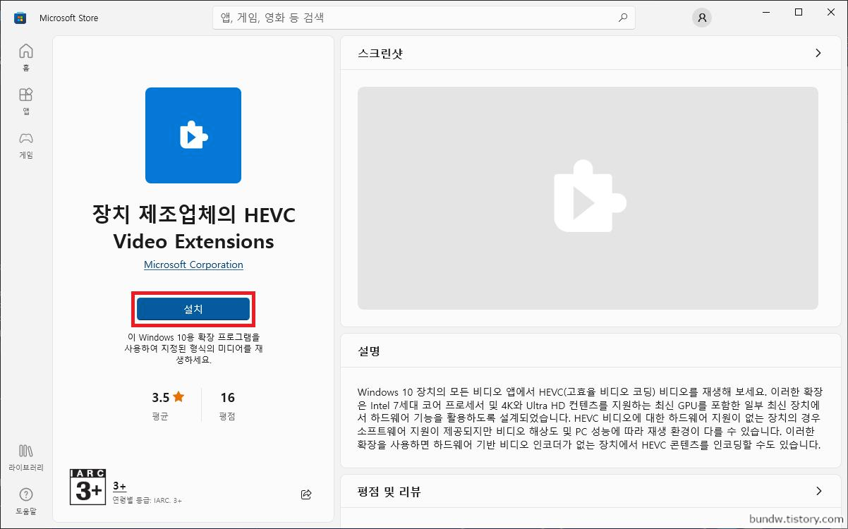 스토어가 실행되면 설치를 클릭하여 확장 프로그램을 설치합니다.