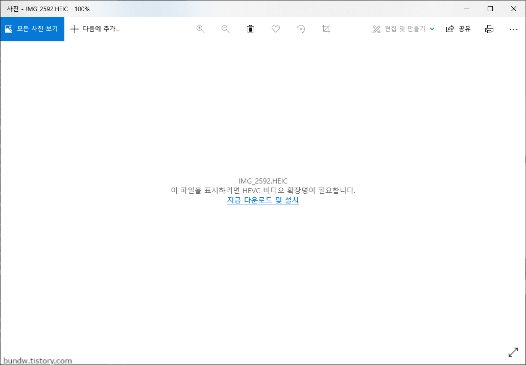 맥에서는 기본으로 지원하기 때문에 별도로 설치를 하지 않아도 미리보기 및 열기를 할 수 있지만, 윈도우인 경우 코덱이 기본으로 설치되어 있지 않아 아래와 같이 볼 수가 없습니다.